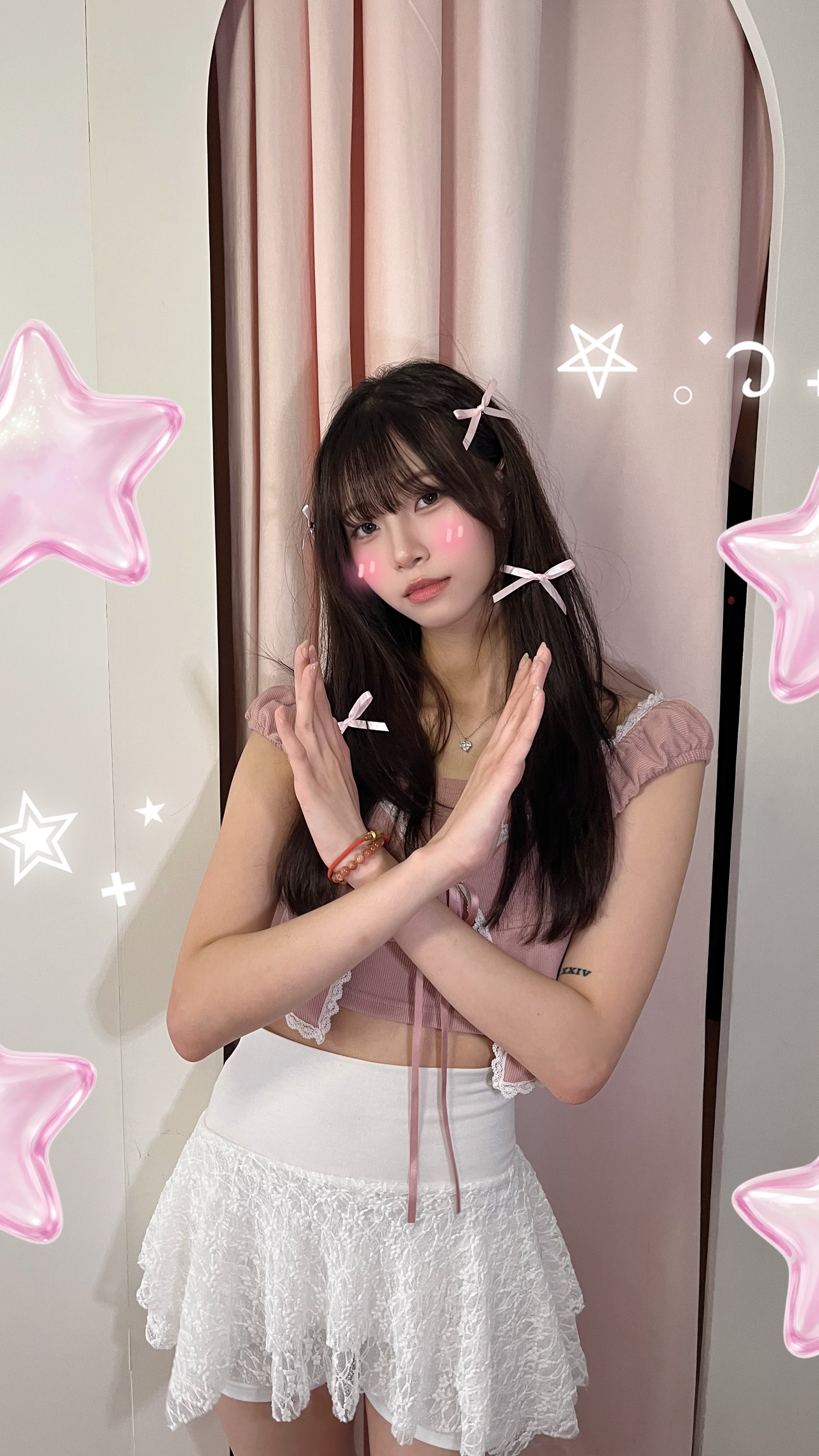 Live大賣❤️🔥韓國荷葉邊假兩件娃娃袖Lacy 拼摺Top